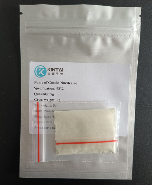 Lotus Leaf Extract Nuciferine Powder is a kind of alkaloid extracted from dried lotus leaf, and is the main lipid-lowering active ingredient in lotus leaf. Pharmacological studies have shown that lotine can dilate blood vessels and reduce blood pressure, and can be used in clinical treatment of hypertension and hyperlipidemia.Healthkintai® is the leading manufcaturer of Lotus Leaf Extract Powder in China, dedicated to providing our customers with high-quality products and services. Our product is known for its high purity and excellent quality, achieved through stringent production processes and quality controls to meet the highest standards.Lotus leaf extract powder 10:1,2%98% Nuciferinefor sale,please feel free to contact us at info@kintaibio.com.